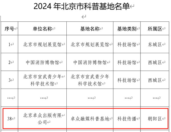 • 卓众出版的“卓众融媒科普基地”获评“北京市科普基地”